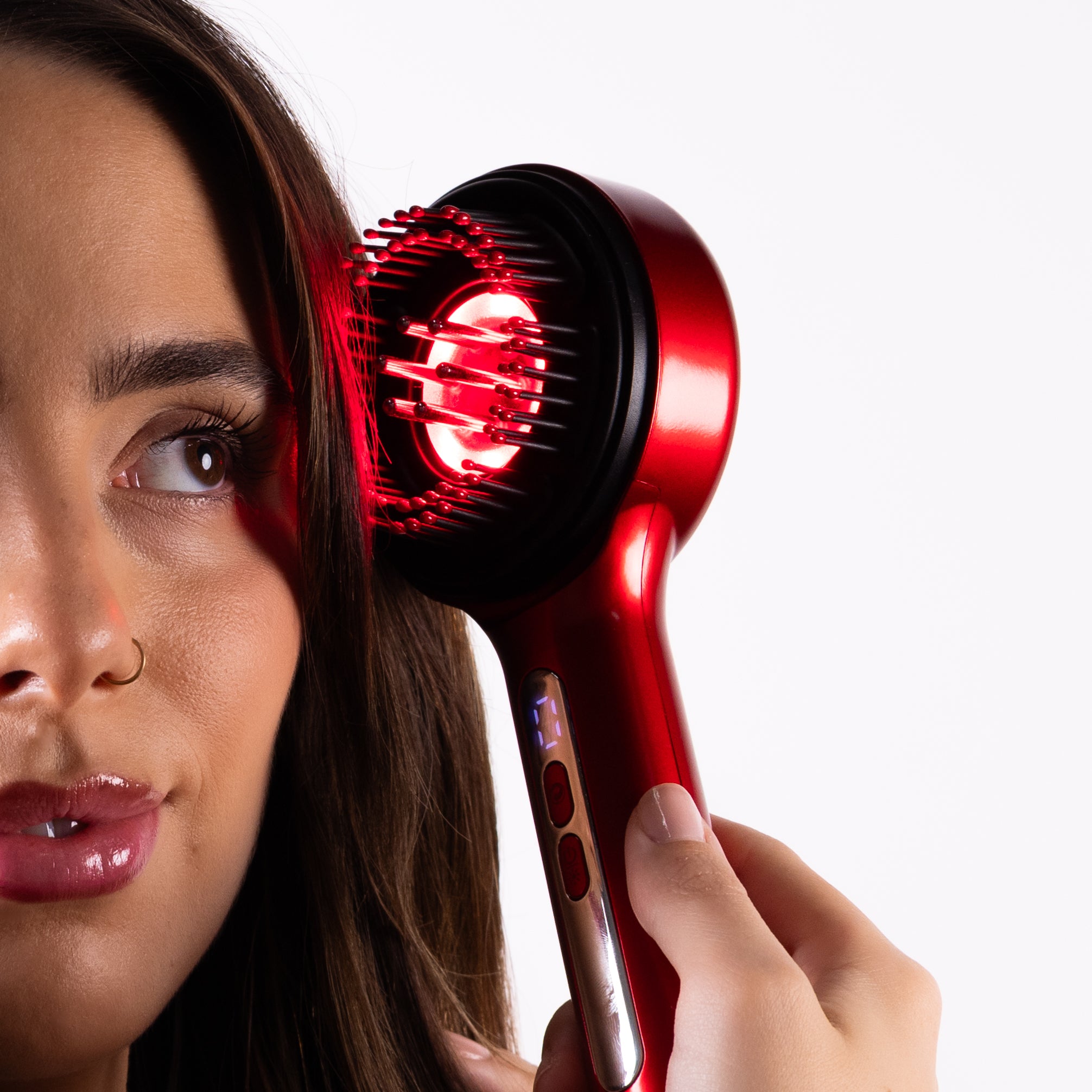 This LED scalp massager combines 660nm red light with soothing vibration to support stronger follicles, improved circulation, and a more relaxed scalp.